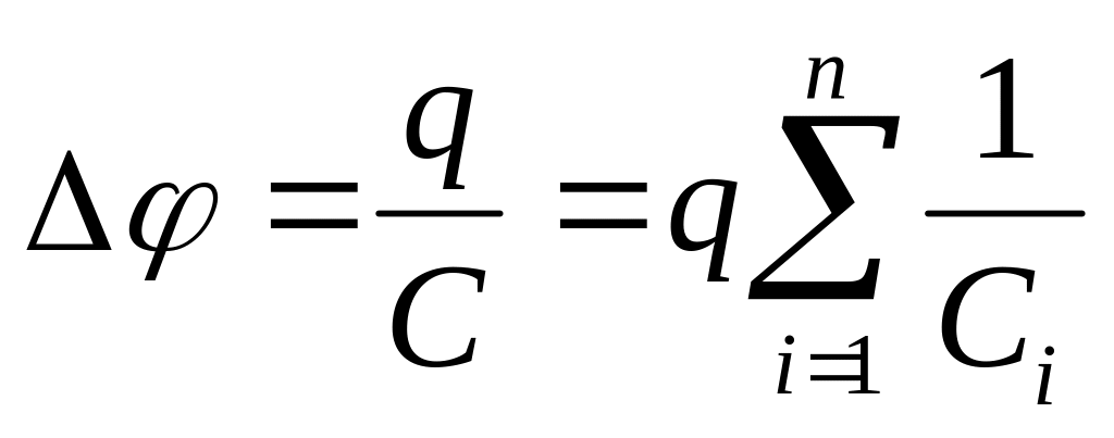 При парал-ом соединении разность потенциалов (напряжение) на всех конденсаторах одинакова, а величина заряда равна сумме зарядов, находящихся на каждом конденсаторе.