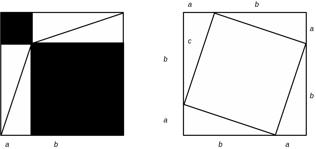 К извлечению квадратных корней сводятся многие геометрические задачи. Например, в курсе геометрии доказывают теорему Пифагора: квадрат длины гипотенузы прямоугольного треугольника равен сумме квадратов длин катетов этого треугольника. Индийцы две тысячи лет тому назад доказывали ее с помощью следующего чертежа.