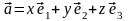 - •Векторы удобно отождествлять с координатами в некотором выбранном базисе. Так, вектор в пространстве записывают в виде: