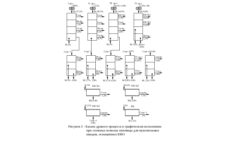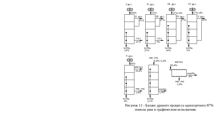 Рис.11 – Баланс драного процесса односортного 87% помола ржи в графическом исполнении