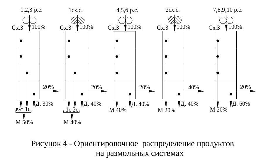 Рис.2– Ориентировочные данные о распределении продуктов с ситовеечных систем