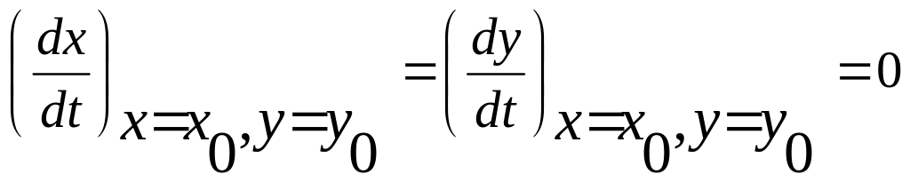 Членами kαβ и k1αβ можно пренебречь, т.к. они содержат произведение двух малых величин, х0 и у0 уже найдены. В результате получаем линеаризованную систему: