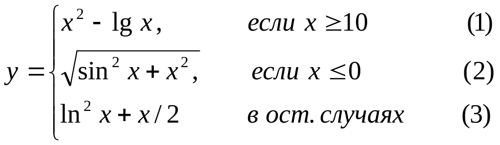 Исходные данные для отладки программы (xнач, xкон, ∆x), выбрать самостоятельно. Результаты (значения аргумента x, функции y, номер формулы) оформить в виде таблицы, строки таблицы пронумеровать. В заголовке таблицы вывести исходные данные. Задание выполнить с использованием операторов цикла while или for.