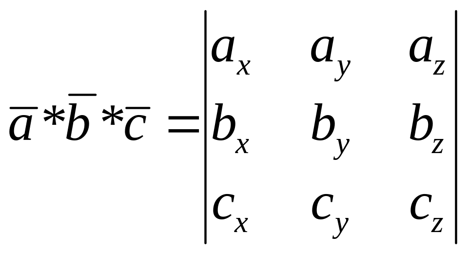 Пусть в правом ортонормированном базисе i,j,k заданы векторы a = (A1,A2,A3) , b = (B1,B2,B3) , c = (Y1,Y2,Y3) . Тогда