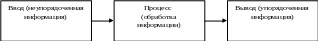 Основными компонентами информационной системы обратной связи применительно к бухгалтерскому учету являются: в качестве ввода — неупорядоченные данные, процесса — обработка данных, вывода — упорядоченная информация (рисунок 5).