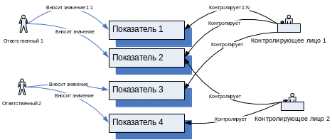 Рис.20. Взаимосвязь показателей, ответственных и контролирующих