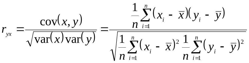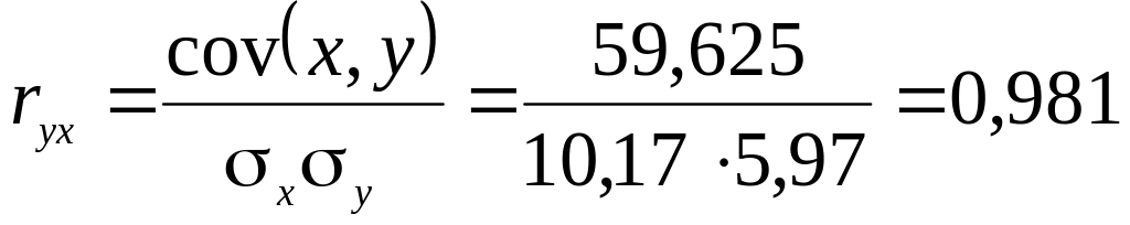 Рассчитаем коэффициент корреляции. Для этого найдем дисперсии переменных, их среднеквадратические отклонения и ковариацию