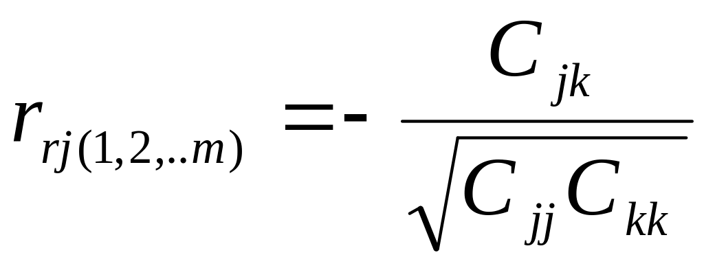 Если необходимо определить связь между двумя случайными величинами при исключении влияния остальных, то используется выборочный частный коэффициент корреляции, который вычисляется по формуле: