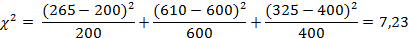 Ожидаемое число событий получаем из нулевой гипотезы, которая в рассматриваемом примере состоит в том, что распределение продаж нового продукта по возрастным группам будет повторять нормальное для продаж традиционного продукта соотношение 1:3:2. Если бы то продажа 1200 упаковок во время тестирования подчинялась ожидаемому образцу продаж, то потребители в возрасте 18-35 лет приобрели бы 200 упаковок; 35-55 лет – 600 упаковок; старше 55 лет – 400 упаковок. Соответствующая статистика рассчитывается следующим образом: