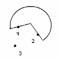 Select arc or circle: — указать точку 1, лежащую на дуге