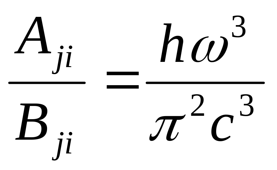 Следовательно, отношение вероятности вынужденного излучения к вероятности спонтанного излучения равно числу квантов частоты ω. Можно сказать иначе: вероятность вынужденного излучения в расчете на один квант равна вероятности спонтанного излучения. Видно, что спонтанное и вынужденное излучение должны быть одной природы.