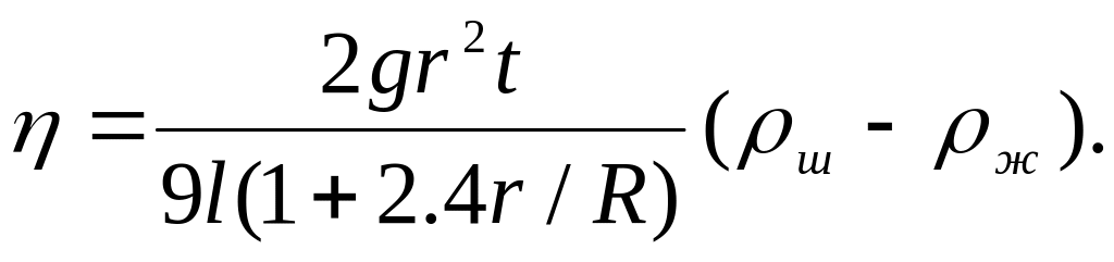 Уравнение (7) справедливо лишь тогда, когда шарик падает в безграничной среде. Если шарик падает вдоль оси трубки радиуса R, то приходится учитывать влияние боковых стенок. Поправку в формуле Стокса для такого случая теоретически обосновал Ладенбург. Формула для определения коэффициента вязкости с учетом поправок имеет вид: