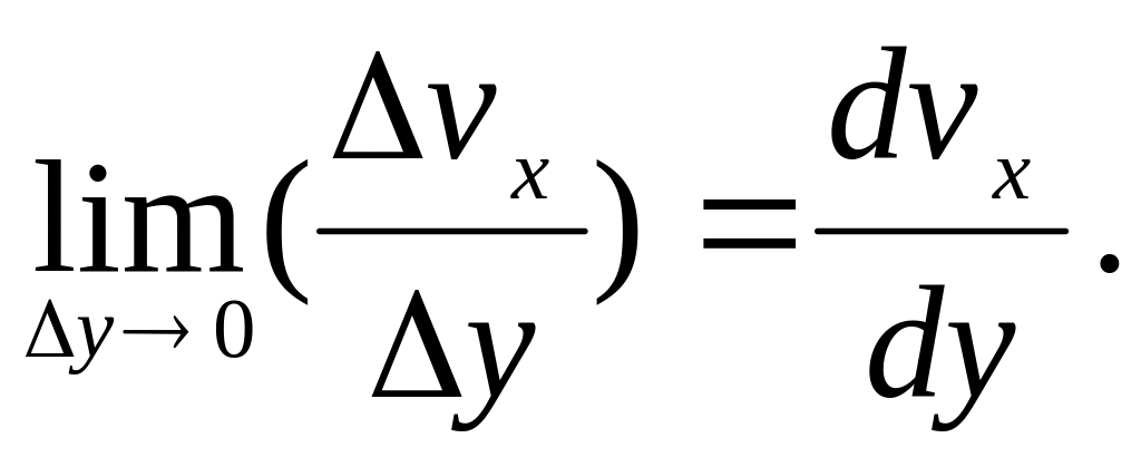 В вязкой жидкости скорость ее течения будет зависит от координаты y (ось OY перпендикулярна горизонту). У твердых поверхностей скорость будет нулевой и касательной в плоскости, которой принадлежит ось OX.