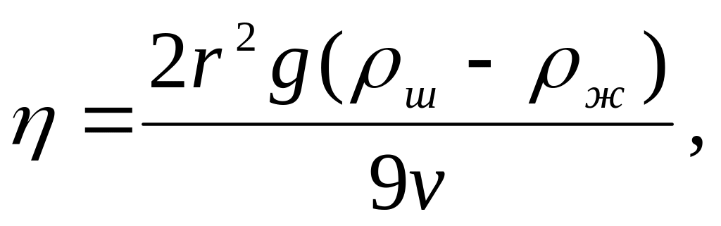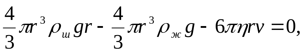 В формулах r - радиус шарика, ш - плотность шарика, ж - плотность жидкости, v - скорость шарика, - коэффициент вязкости.