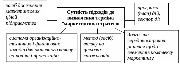 Рисунок 1.1 – Сутність підходів до визначення терміна «маркетингова стратегія»