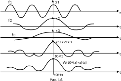 Следовательно, напряжение на выходе согласованного фильтра определяется АЧС сигнала и не зависит от ФЧС, т.к. последний компенсируется ФЧХ фильтра. Поэтому все гармонические составляющие одновременно достигают амплитудных значений в момент времени t=tз+t0 и эти значения суммируются (рис. 16).