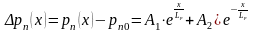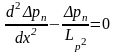 Аналогичным образом можно получить, что распределение концентрации неравновесных электронов в области р описывается уравнением