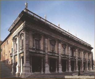 -Новый дворец (палаццо Нуово, первый римский музей, открытый для публики) с одинаковыми фасадами, объединенными мощным ритмом пилястров, Открытые галереи нижних и мощные пилястры верхних этажей во дворцах Консерваторов подчеркивают протяженность и величие этих сооружений. Микеланджело спроектировал новый фасад, гармонирующий с остальными зданиями, расположившимися на площади, одновременно сохранив традиционную римскую монументальность, их достраивали архитекторы Томмазо Кавальери, Просперо Боккадополи и Джироламо Рийнальди.