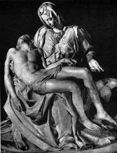 - Мадонны XV века миловидны и несколько сентиментальны. Мадонна Микеланджело трагически задумчива, погружена в себя, она не изнеженная патрицианка и даже не трогательная в своей любви к младенцу юная мать, а суровая и величавая дева, которая сознает свою славу и знает об уготованном ей трагическом испытании.