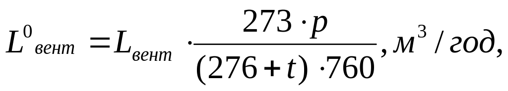 де Vпр – об’єм кімнати, м3; К – кратність повітрообміну в кімнаті, год–1; – продуктивність вентилятора за нормальних умов.