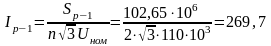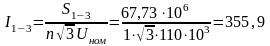 Находим ток в линиях в режиме максимальных нагрузок: