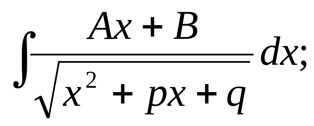 - •4.1. Интегрирование функций, содержащих квадратный трехчлен.