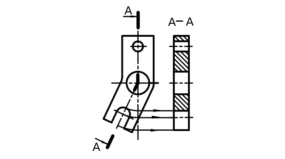 Контур вынесенного сечения всегда обводится сплошной толстой линией.