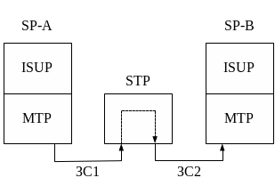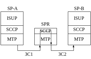 В этом пункте реализуется только три уровня подсистемы MTP. Он выполняет функции транзита сигнальной информации через третий уровень подсистемы MTP из одного ЗС в другое. Его код не может быть использован в качестве OPC и DPC.