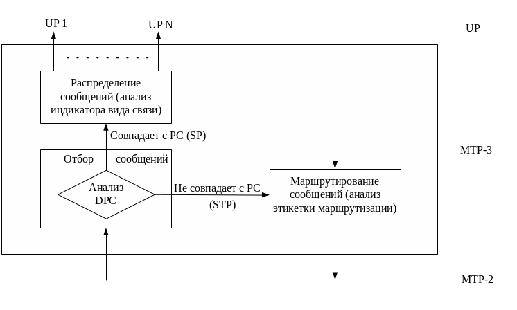 она используется в каждом пункте сигнализации для того, чтобы определить предназначено ли данное сообщение этому пункту или нет. Если пункт транзитный, тогда сообщение не предназначается данному пункту, и оно передается в функцию маршрутирования.
