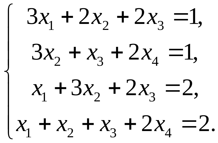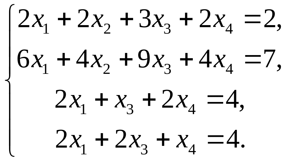 Решить систему линейных алгебраических уравнений методом Гаусса.