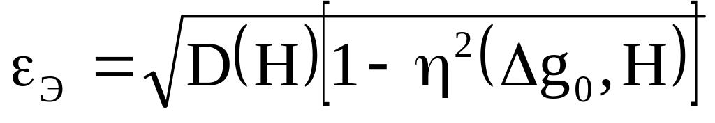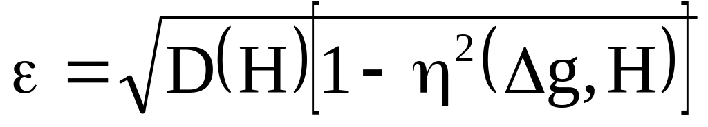 На корреляционном графике прямая регрессии проходит так, что наилучшим образом описывает корреляционное "облако". Отклонение наблюдаемой зависимости между Δg и Η от линии регрессии характеризуется ошибкой приближения ε, определяемой по формуле:
