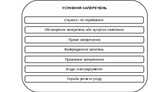 Під час ознайомлення покупця з товаром можуть виникати розбіжності в поглядах, усунення яких вимагає від торгового агента знання методики обробки зауважень. Вирізняють кілька способів поведінки торговельного представника у разі усунення заперечень (рис. 11.6).