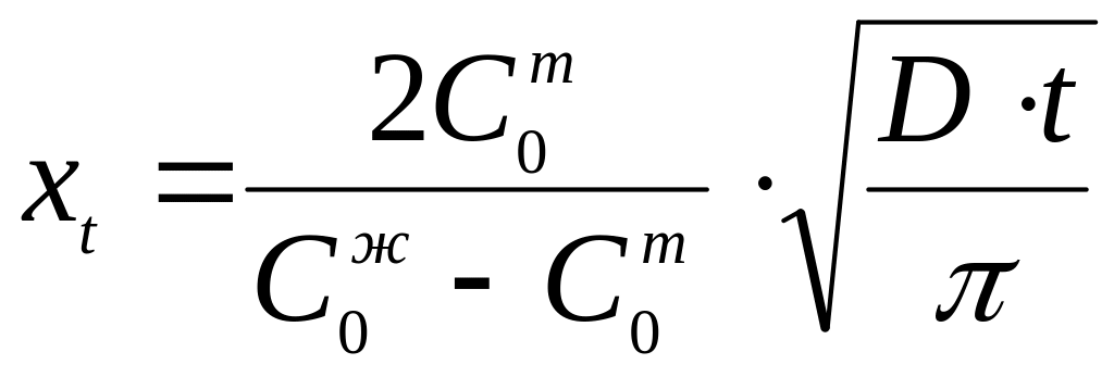Для случая двухкомпонентной системы, в которой при температуре пайки интерметаллиды не образуются, без учета влияния перемещения межфазной границы навстречу диффузионному потоку толщина закристаллизовавшегося слоя может быть определена по формуле: