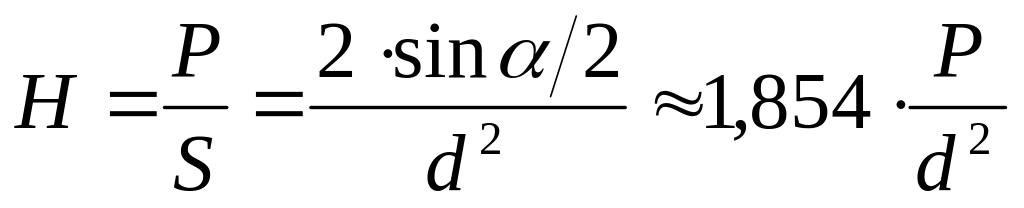 Р – нормальная нагрузка, приложенная к алмазному наконечнику, в Н или кг.