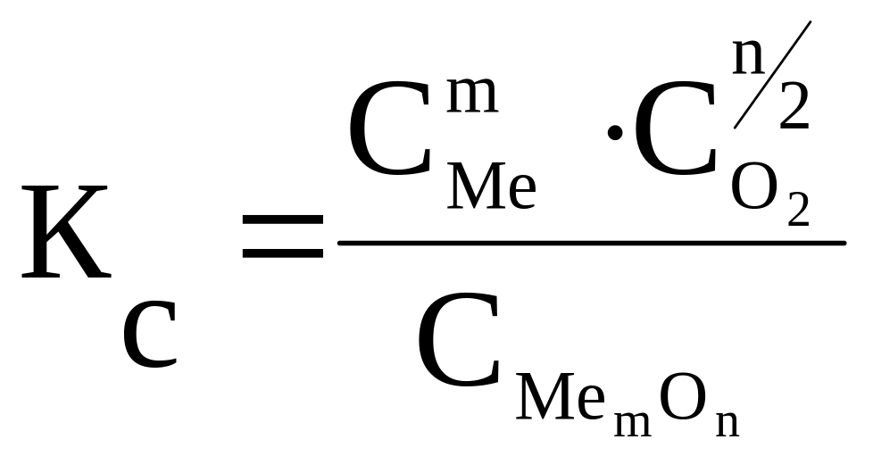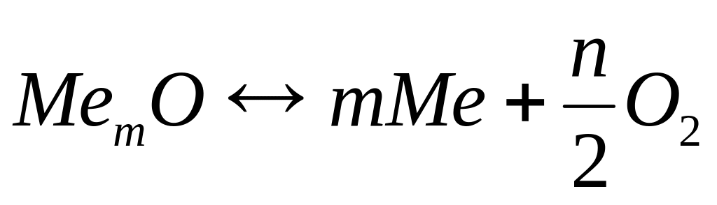 Значение , при котором реакция (3.1) находится в равновесии, называется упругостью диссоциации окисла. Для заданной температуры при парциальном давлении кислорода меньше, чем упругость диссоциации рассматриваемого окисла, реакция протекает в направлении слева направо, т. е. в сторону диссоциации. Повышение температуры при постоянном парциальном давлении кислорода приводит к смещению в сторону диссоциации.