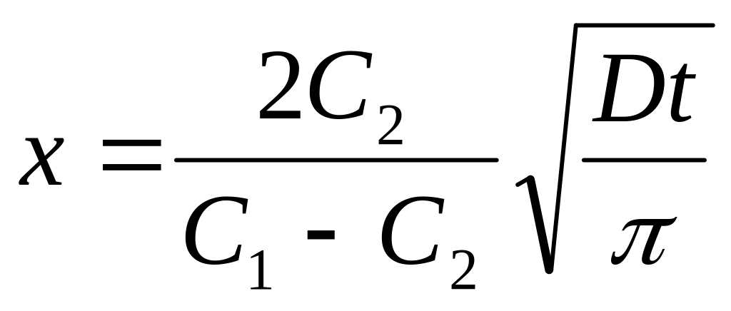 Считая, что диффузия идет в полубесконечное тело, и пренебрегая влиянием на градиент концентрации движения межфазной границы навстречу диффузионному потоку, выведено выражение для толщины закристаллизовавшегося слоя (рис. 1.9):