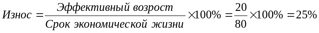 Оценивается единый объект недвижимости, включающий земельный участок и типовое здание. Общая площадь здания 985 м2. Время постройки — январь 1987 г. Типичный срок экономической жизни здания — 80 лет. Физический износ здания рассчитывается исходя из срока его жизни. С учетом нормальной эксплуатации здания величина эффективного возраста принята равной хронологическому возрасту здания. Другие виды износа здания отсутствуют.
