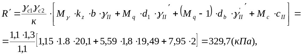 P = 268,1 кПа < R = 329,7 кПа;