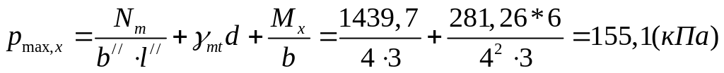 Найбільше значення тиску на ґрунт при розрахунках на міцність визначається за формулою: