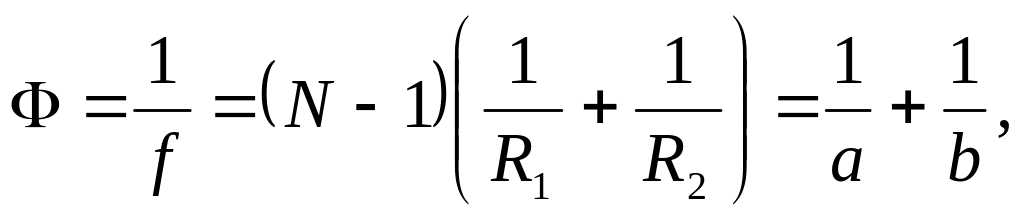 22.9. Радиусы кривизны поверхностей двояковыпуклой стеклянной линзы, находящейся в воде, равны 50 см каждый. Определить оптическую силу линзы.