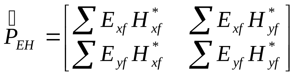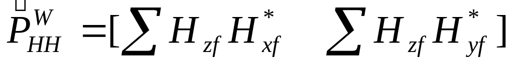 Суммирование ведется по различным мгновенным значениям комплексных амплитуд отфильтрованных полей Exf, Eyf, Hxf, Hyf, Hzf, звездочка означает комплексно сопряженные величины. Искомый импеданс равен: