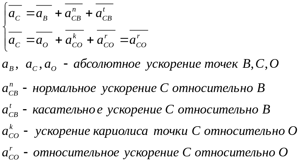 Для нахождения полного ускорения точки С необходимо составить систему уравнений: