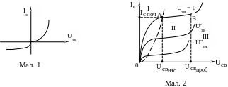 При подальшому зростанні вихідної напруги струм залишається майже незмінним аж до пробивної напруги (область ІІІ).