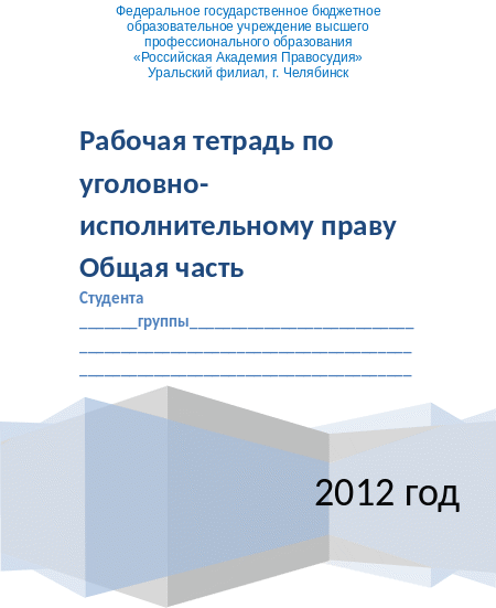 Рабочая тетрадь студента по уголовно-исполнительному праву разработана с целью повысить уровень активности студента в части выполнения самостоятельной работы по изучаемой дисциплине.