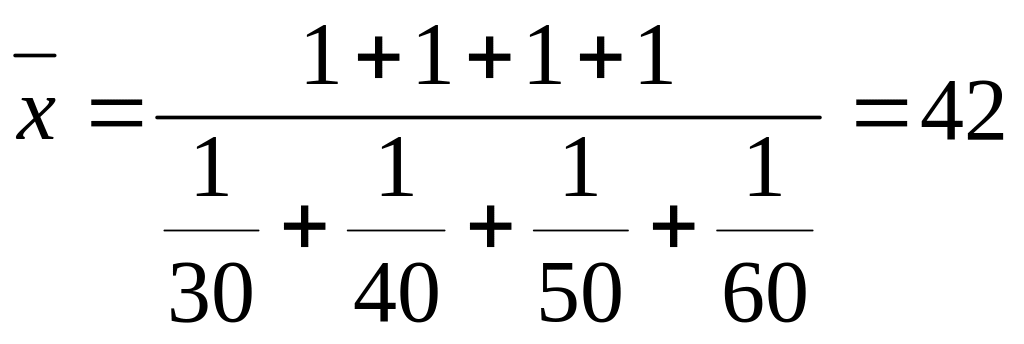 Например, четыре швеи - надомницы заняты пошивом головных уборов одной модели. Первая тратит на изготовление одного головного убора 30 мин., вторая -40, третья – 50, четвертая – 60 мин. Необходимо определить средние затраты на пошив одного головного убора при условии, что каждая надомница работает по 10 часов в день.