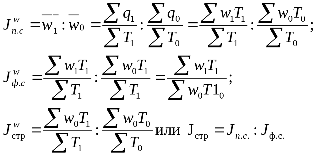 Для характеристики изменения производительности труда (по совокупности предприятий, отраслей и пр.) можно использовать следующие индексы.