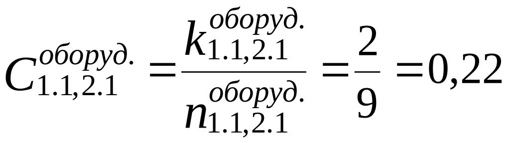 1. Относительная доля совпадающих видов оборудования в их общем перечне рассматриваемых технологических процессов