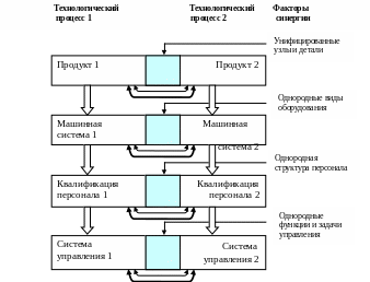 возможность совмещения тех или иных звеньев технологической цепи, возможно целиком отдельных частичных технологических процессов;