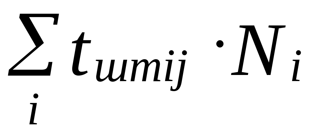 Итоговая строка содержит сумму произведений штучного времени исполнения операции для того или иного изделия на объем производства этого изделия, по всем изделиям продуктового портфеля предприятия (трудоемкость исполнения операции по всем изделиям продуктового портфеля с учетом объемов их производства).