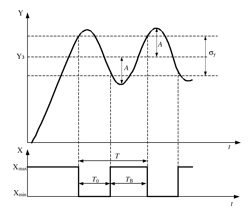 Рисунок 8.3 – Изменение выходной величины Y и регулирующего воздействия X при симметричных автоколебаниях